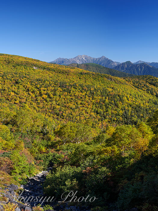 乗鞍岳と万年雪と紅葉