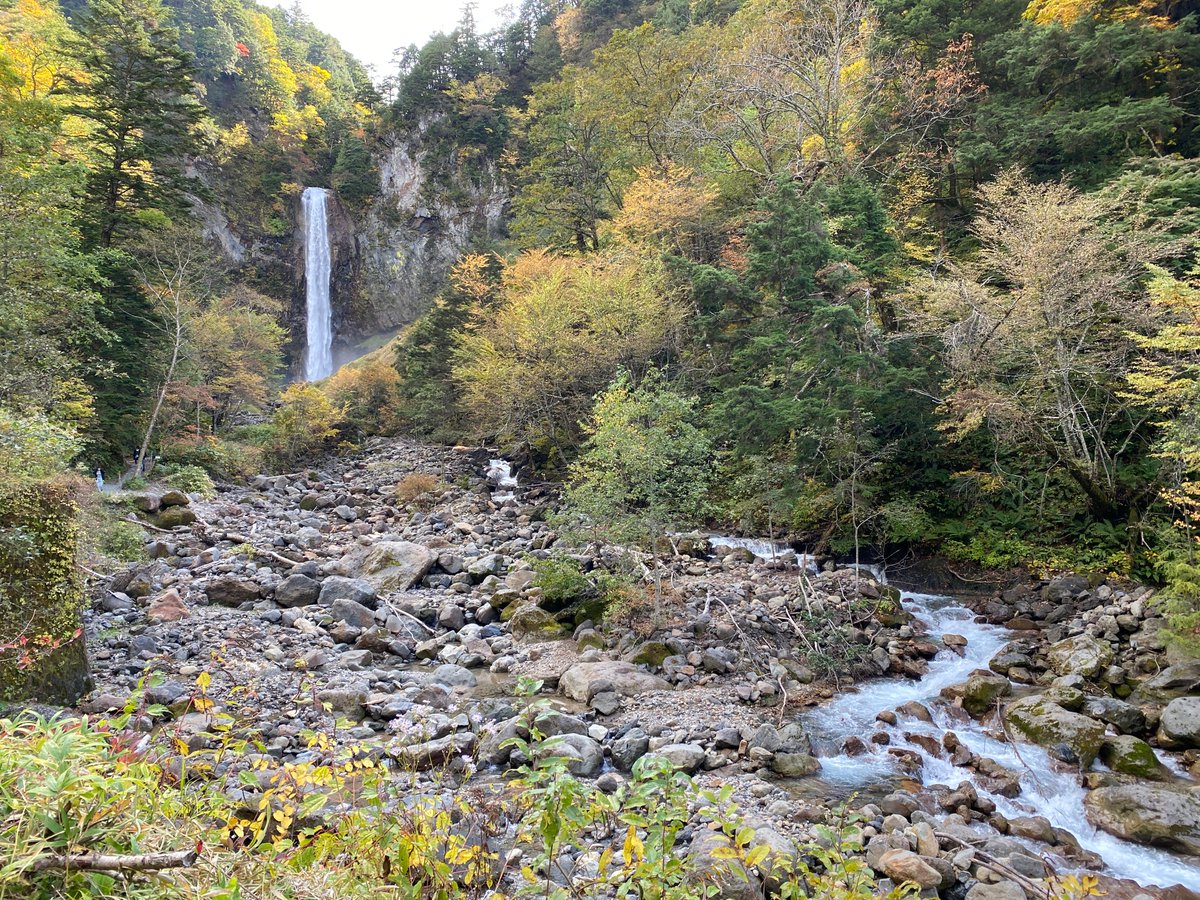 紅葉が始まった平湯大滝です.GPS座標は駐車場で,100m程度南東に歩きます.柱状節理がよく見えます.アカンダナ山の溶岩かと思ったのですが,帰宅後調べたら,乗鞍岳から流れ下ってきた溶岩流とわかりました. https://t.co/qhnCdlIuQB