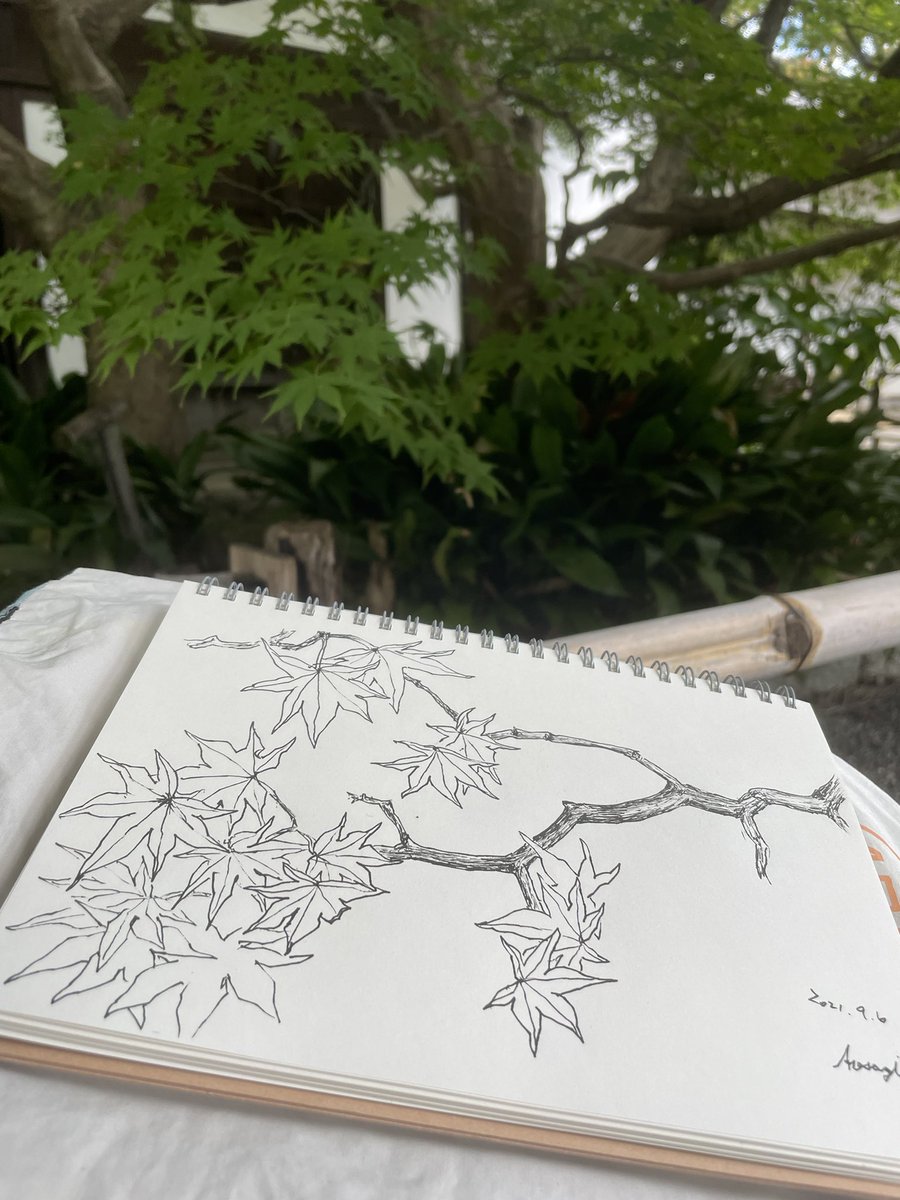 朝、参拝あと青蓮院にて紅葉スケッチ。