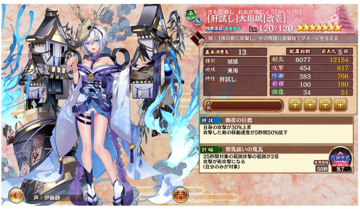 SSR大垣城(古賀葵)・SR興國寺城(嶺内ともみ)&真田本城(薄井友里)・HR久保田城(松田颯水)・R人吉城(五十嵐裕美)育て中(笑)