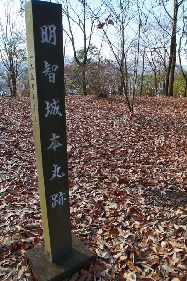 本丸曲輪にある明智城址碑