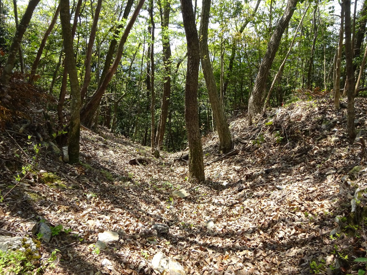 大桑城「馬慣らし場」付近の掘切には石垣らしき石が散乱している、、転落石だろうか。。 https://t.co/Y9FDae7fUa