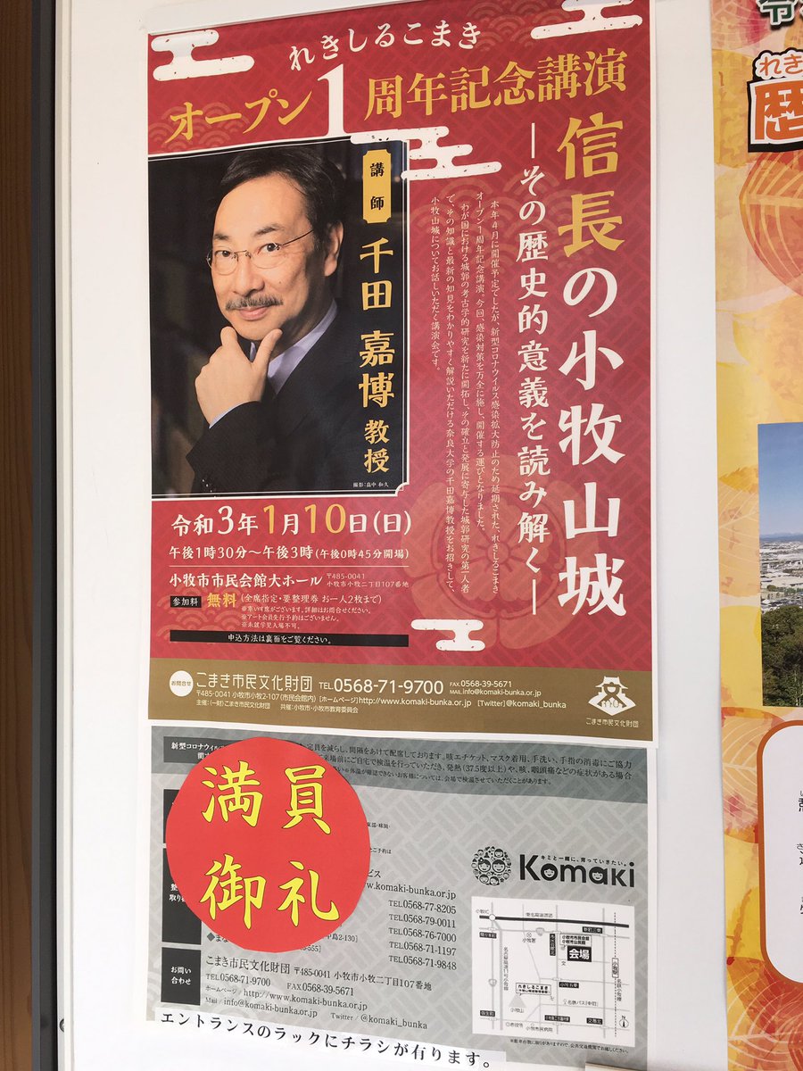 小牧山城に行ってみた〜。石垣はあんまりなかったけど、曲輪に萌え。千田先生の講演、満員御礼なのは知ってたけどチラシを記念に貰って来た♬ #れきしるこまき #小牧山城 #千田嘉博先生 https://t.co/GLctl6FZRU