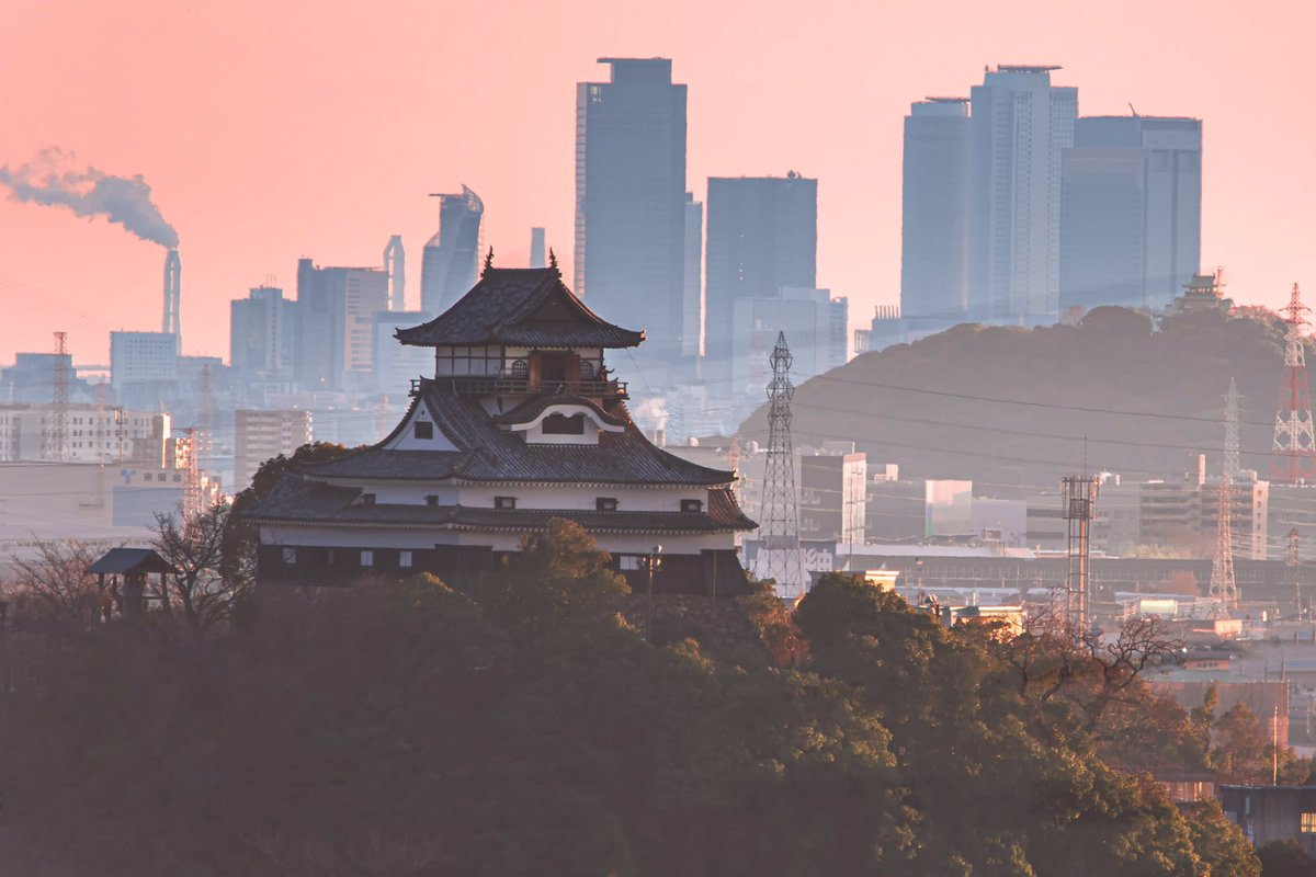 超望遠レンズで2つの城攻め。犬山城と小牧山城。美濃から尾張方面を。 https://t.co/fiUBzoi04H
