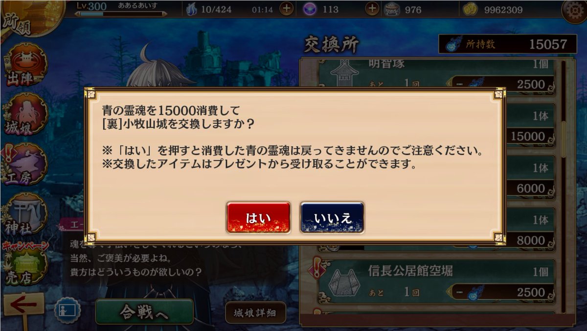 何時間か待ってもセリフ出てこないし、小牧山城好きな人が居ないなら適当な仕上げで良いかな。と思った