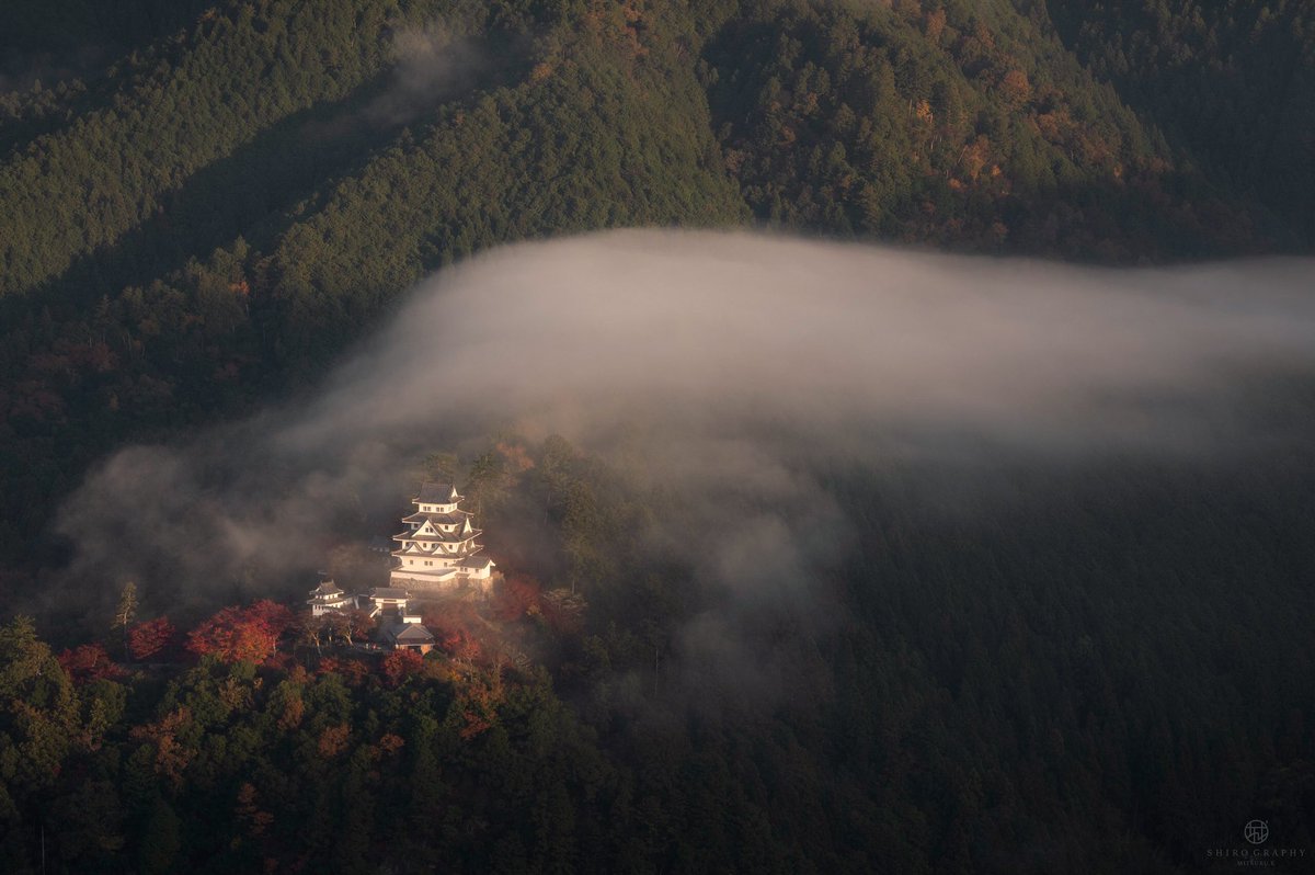 @1979xyz1205 紅葉と真っ白の郡上八幡城、なんて綺麗なんだ!!