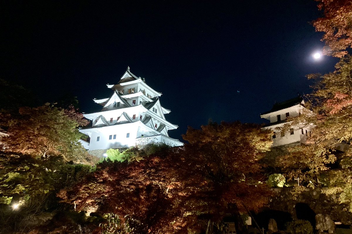 昨夜、郡上八幡城に行ってきました。ライトアップもされていて、キレイでした。紅葉は、ピークをちょっと過ぎている感じでしたが、満足できました。#郡上八幡城 #紅葉 https://t.co/AYENGy1sdD