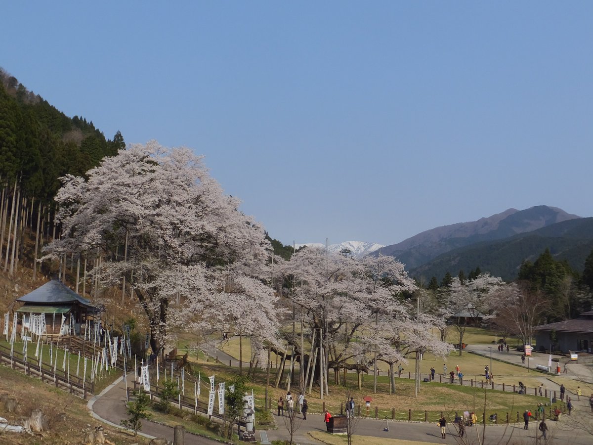 お休みもらい、樽見鉄道で薄墨桜を見に行った。満開の花がとても美しい。昨年天然記念物指定100年を迎え樹齢は1500年余りといわれており、美しく咲く30mもの広がりをどっしりした幹が支えている。後方に薄墨二世が重なり咲く姿は互いに支… https://t.co/tbwUV9qlOA