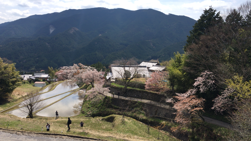 街の喧騒から離れた山里に咲く桜と棚田。天気は微妙でしたし、見頃を過ぎての訪問でしたが、とても印象的な風景でした。