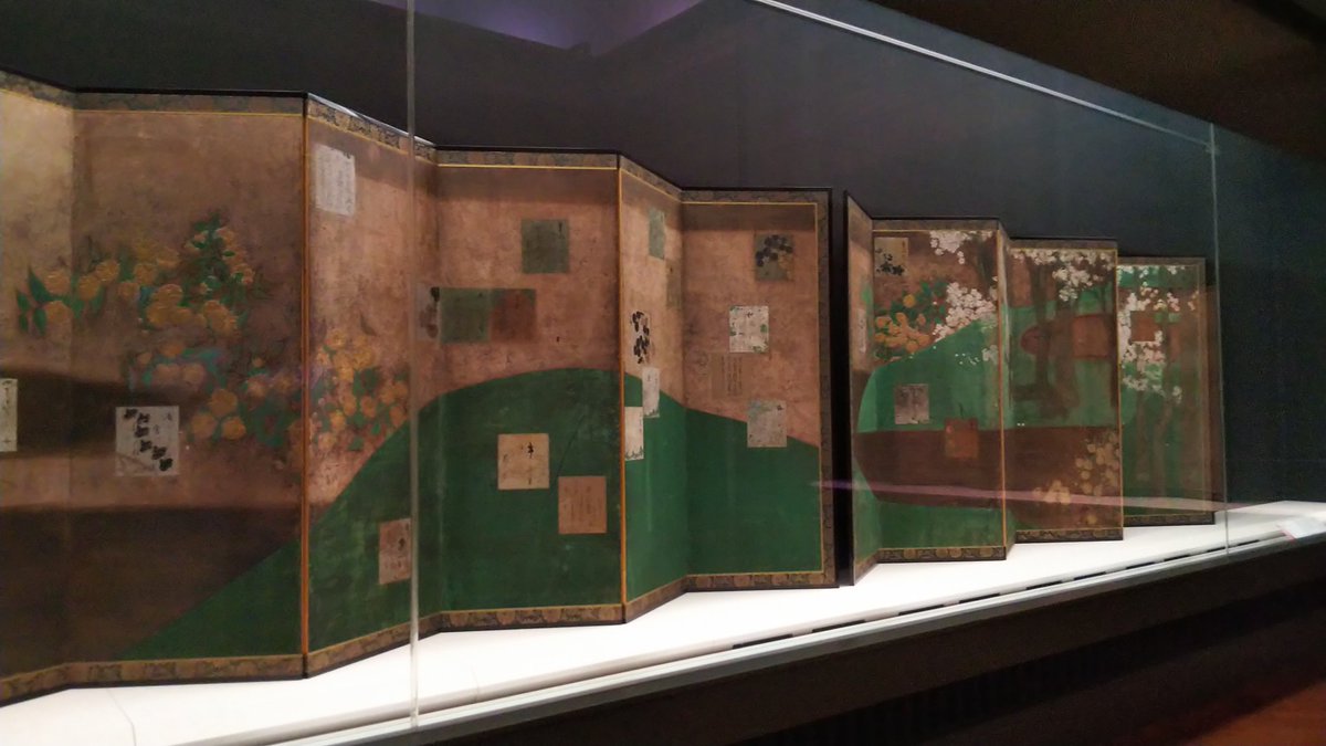 東博常設、伝俵屋宗達「桜山吹図屏風」、住吉具慶「観桜図屏風」。渡辺始興の代表作「吉野山図屏風」も展示されておりました。 https://t.co/HmausZkhWV