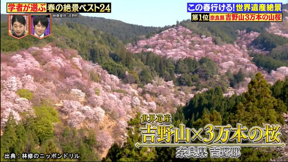 #林修のニッポンドリル で「学者が選ぶ春の絶景ベスト24」で #吉野山 の桜が第1位になりましたが、番組内で放送されていたのがこの中千本の桜です
