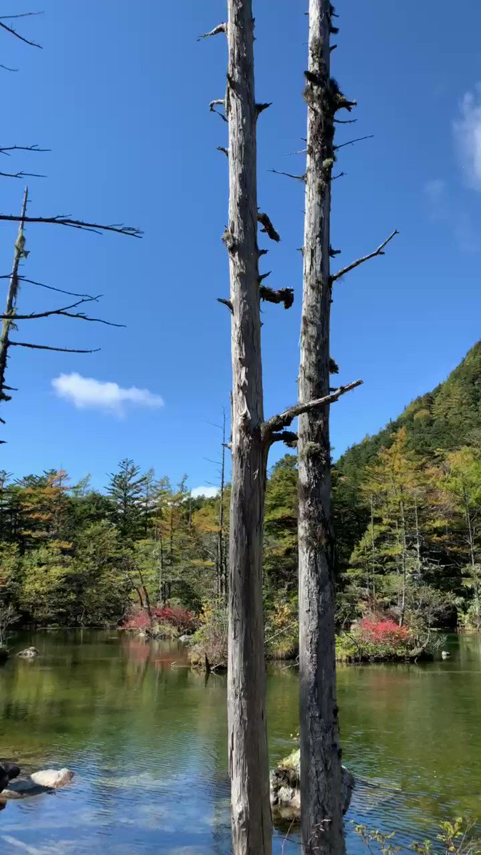 本日お昼頃の明神池。 #上高地 #紅葉 #秋 https://t.co/0ndIDS6DED
