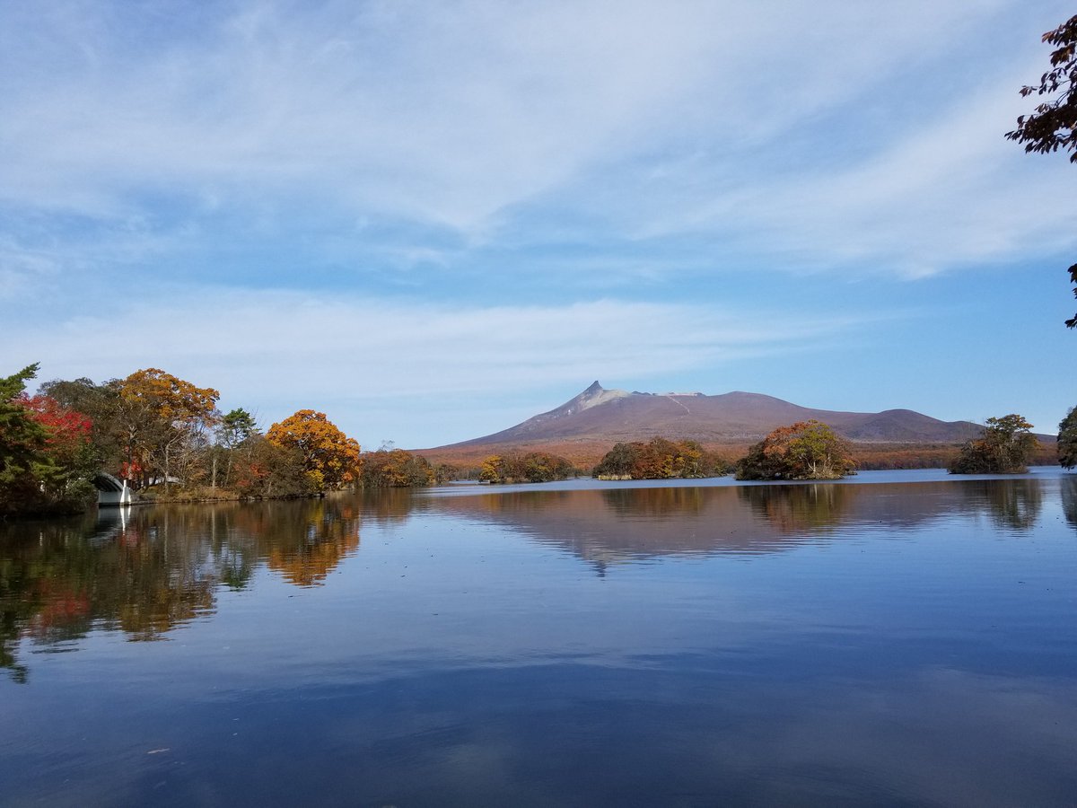 大沼公園の紅葉と渡島駒ケ岳 (@ 湖月橋 in Nanae-chō, Hokkaidō) https://t.co/GbLNMTKbU7 https://t.co/BCvQJkYT9Q