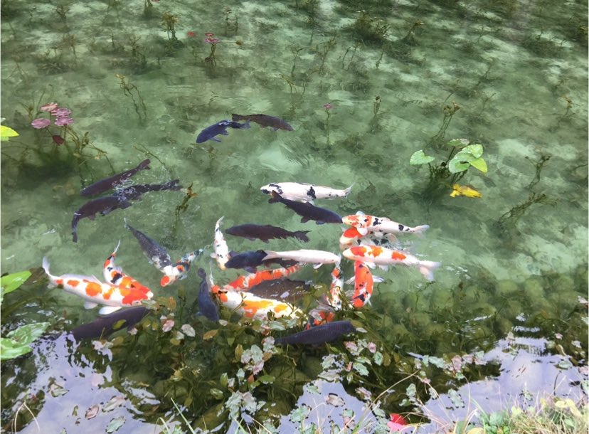 モネの池(名もなき池)行ってきたんだけど、餌やりの時間だったのでじゃばじゃばしてた