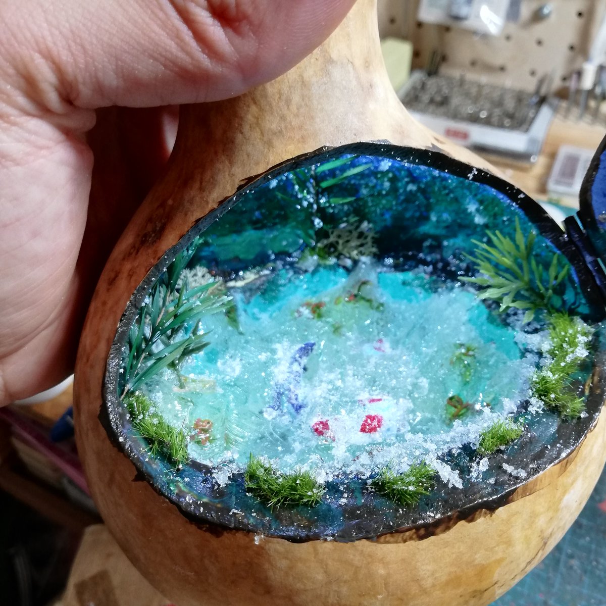 本当は、プレゼント用にモネの池のリメイク版を作製しておりましたが、まさかの失敗をしまして…で、急遽以前作製したこちらの神の子池に切り替えました。なんか、すいません(^_^;) https://t.co/fjnMXXJEPF