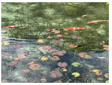 モネの池を綺麗に撮るには時期、天気、人のいない時間、鯉の機嫌の全てを満たさないと人がわちゃわちゃした茶色い池の写真になる
