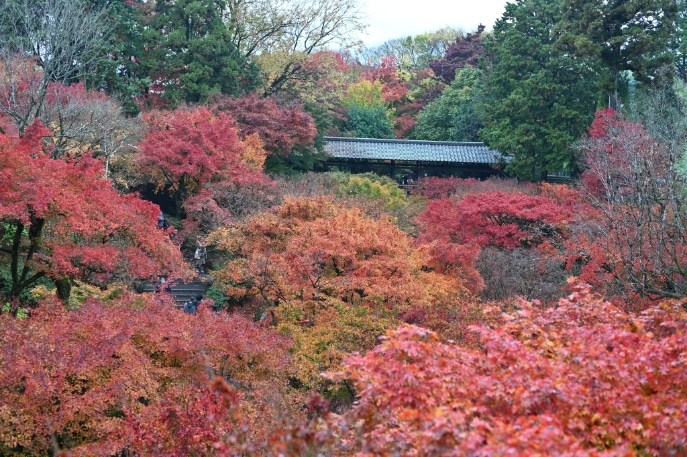 京都も紅葉が見頃のピーク。東福寺も最後の綺麗な彩りです。通天橋から眺める臥雲橋側ではなく反対側の渓谷を。