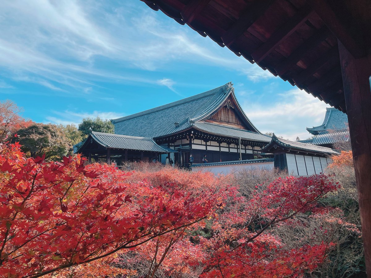 京都市東山区です。先日撮った写真を少しずつ紹介してます。楽しみにしてた東福寺に向かいます。歩いていると道路の上まで伸びた紅葉の大きな枝に圧倒されます。別の写真です。この真っ赤な鮮やかさに驚きます。#京都 #kyoto #東福寺… https://t.co/1wbVi3Skv8