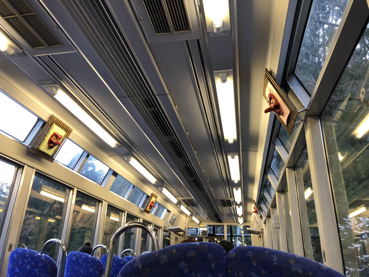 黄緑色の「きらら」の車内及び、昨年の台風被害を受けた三陸鉄道の復興を祈願した三鉄カラー仕様に塗り替えられた700系です。( ˘ω˘ ) https://t.co/xB1wABs127
