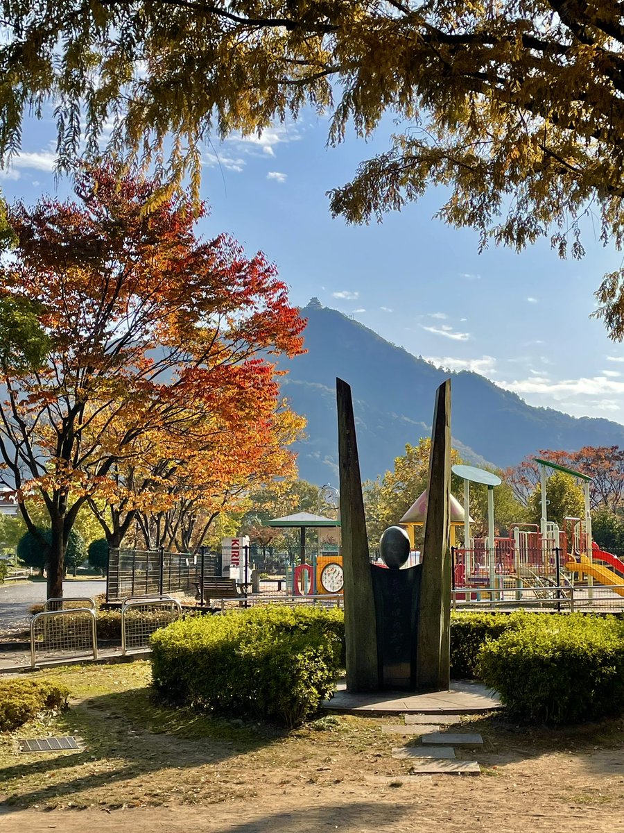 岐阜公園から見る金華山も少し紅葉してきました。あまり知られていませんが金華山も11月下旬から12月初旬にかけてキレイに紅葉するんですよ。 https://t.co/c5XtgtfQU2