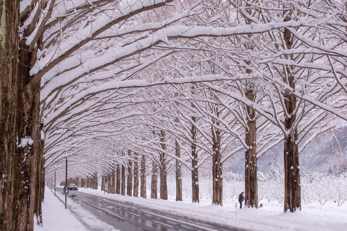 秋の紅葉や雪の積もった冬もきれいな人気のフォトスポット滋賀県の高島市にあるメタセコイア並木。 https://t.co/qQ2d25UO2M