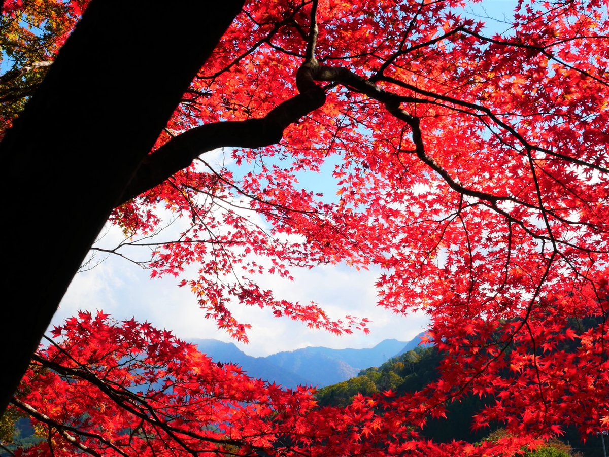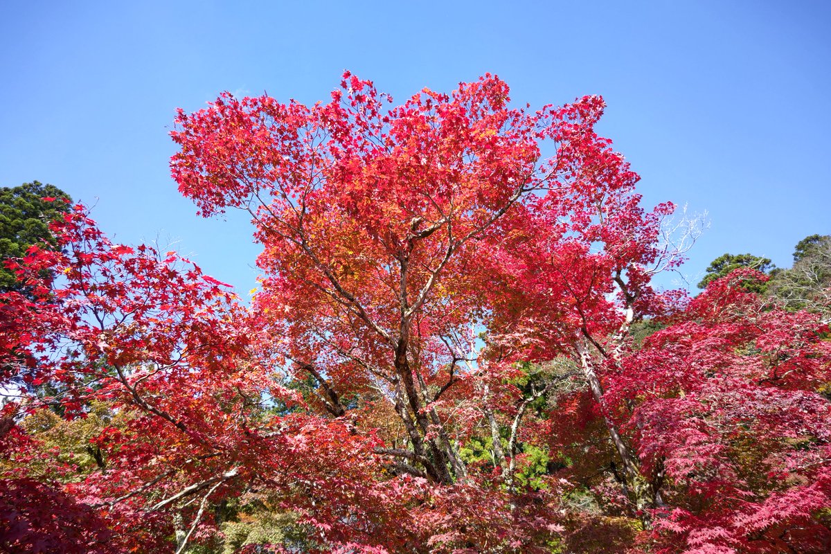 永源寺の紅葉、まだ緑の葉が目立つところもあったけど、一部の木はもう真赤になってた。これから11月下旬にかけて一番見頃になりそう。 https://t.co/sPlLRpG1HU