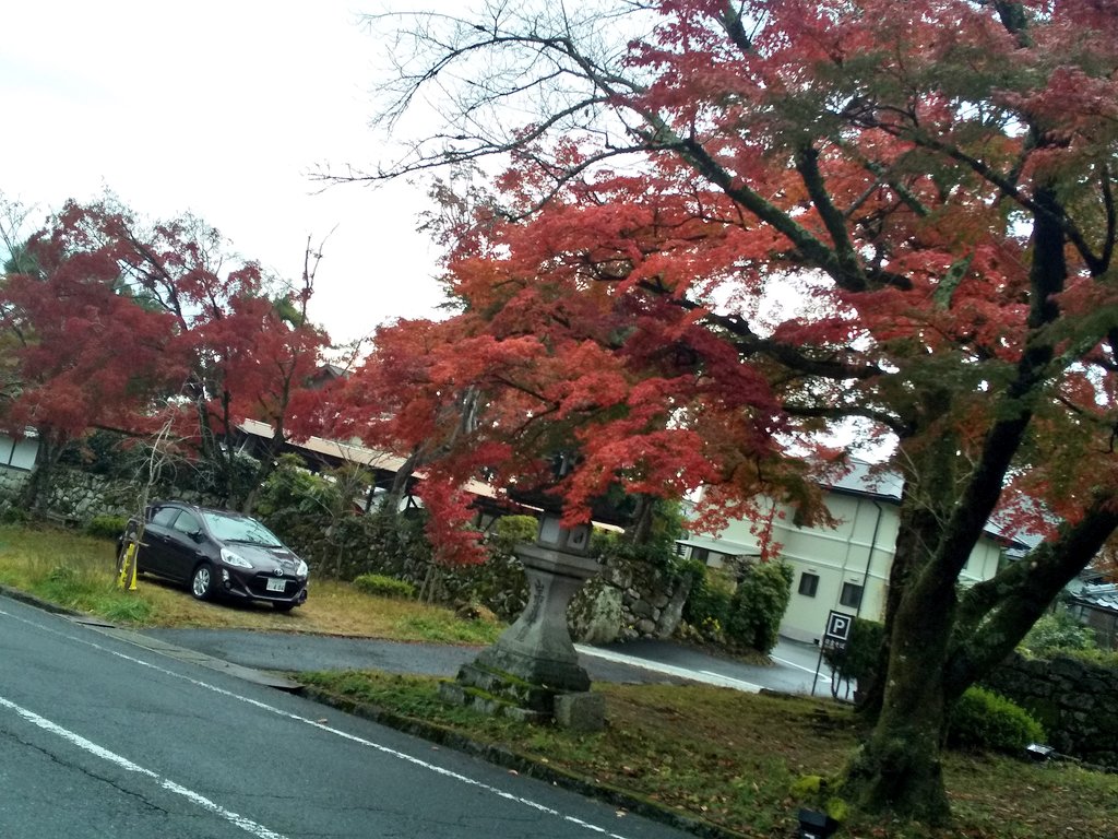 京都からの帰り道、 日吉大社にお参りして車を走らせていると、突然紅葉で真っ赤な参道が現れた!
