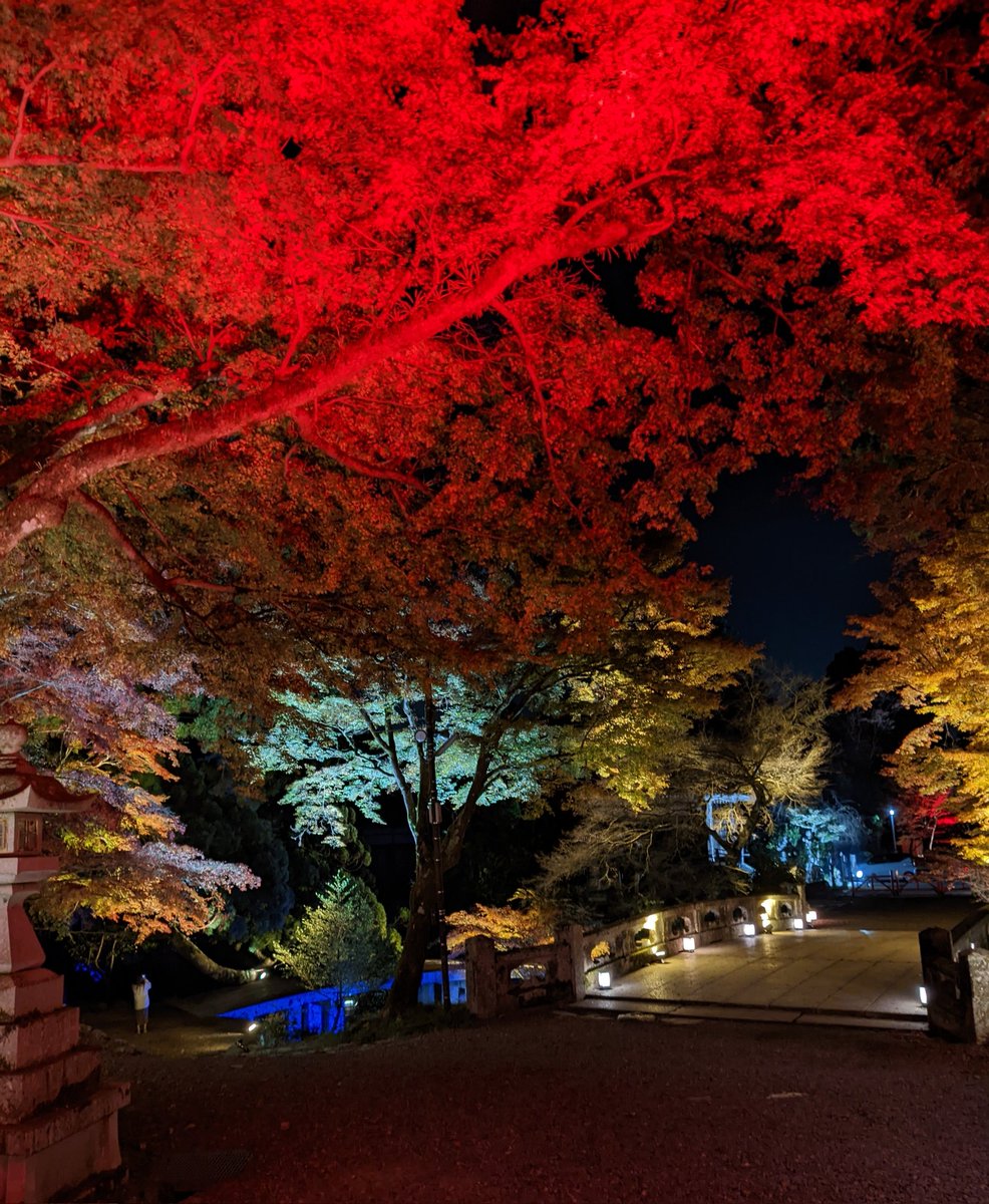 昨年、日吉大社や西教寺を見に行った時に、七色の照明に照らされていて、「紅葉・黄葉を愛でてるのになんと無粋な…」と思ってしまいました。静かな坂本の夜なのに、照明だけやかましい感じ。 https://t.co/a5MnOs55So