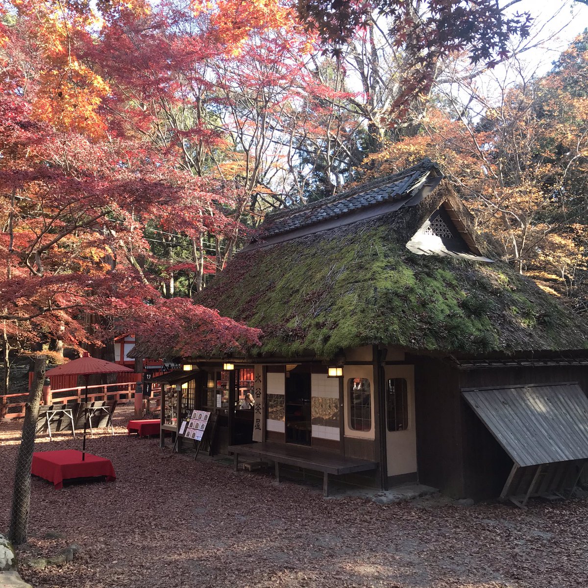 秋の終わり冬の始まり。青空に誘われて名残の紅葉を探しにお散歩。盛りを過ぎても水谷茶屋の美しさは圧巻ですtsuyu
