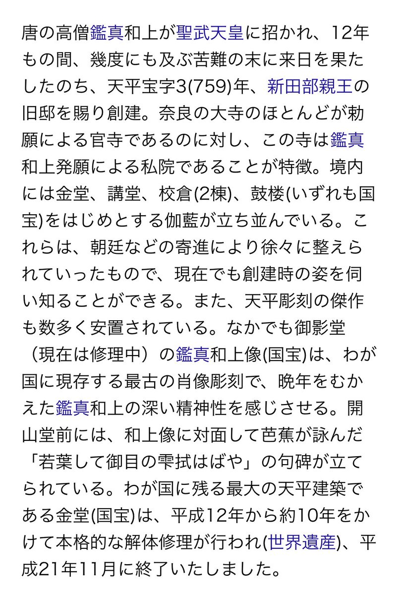 古都奈良の文化財 東大寺・興福寺・春日大社・春日山原始林・元興寺・平城宮跡・薬師寺・唐招提寺の8遺産群が指定。(1998年登録) https://t.co/lqIBtQr5AW
