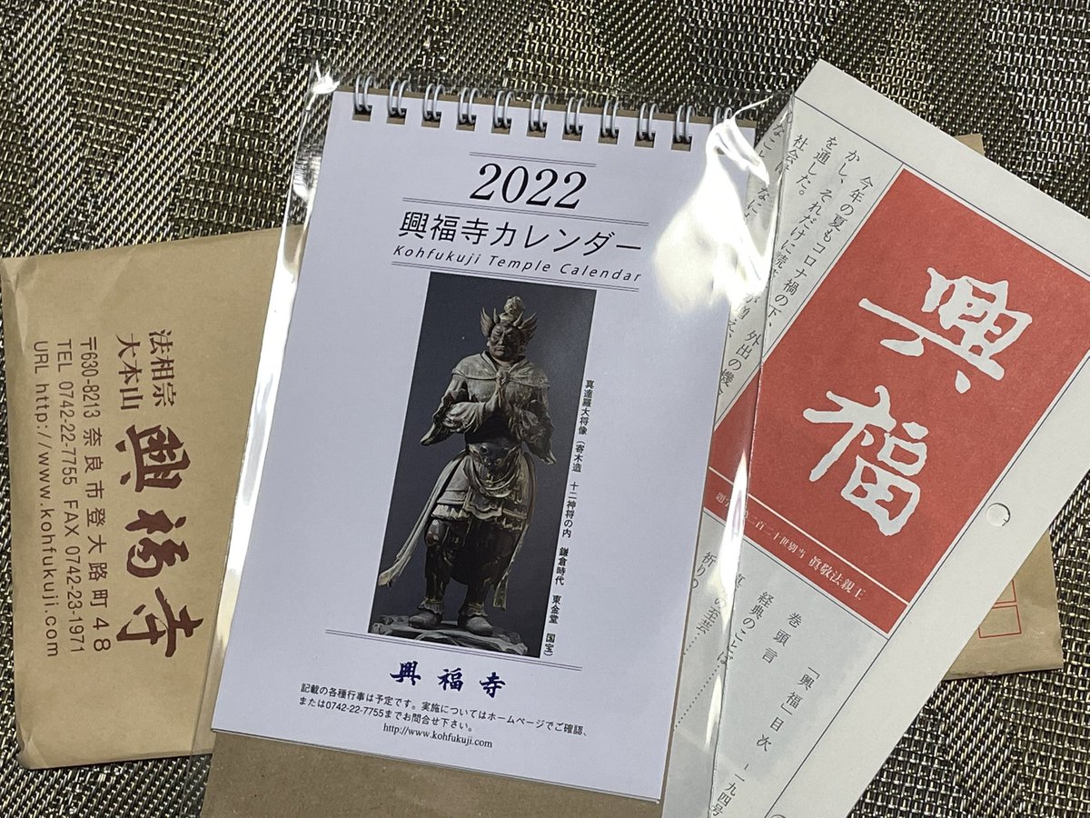 帰宅したら、興福寺さん友の会から寺誌『興福』と来年のカレンダーが、東大寺さん友の会から行事のお知らせと東大寺手帳が届きました。
