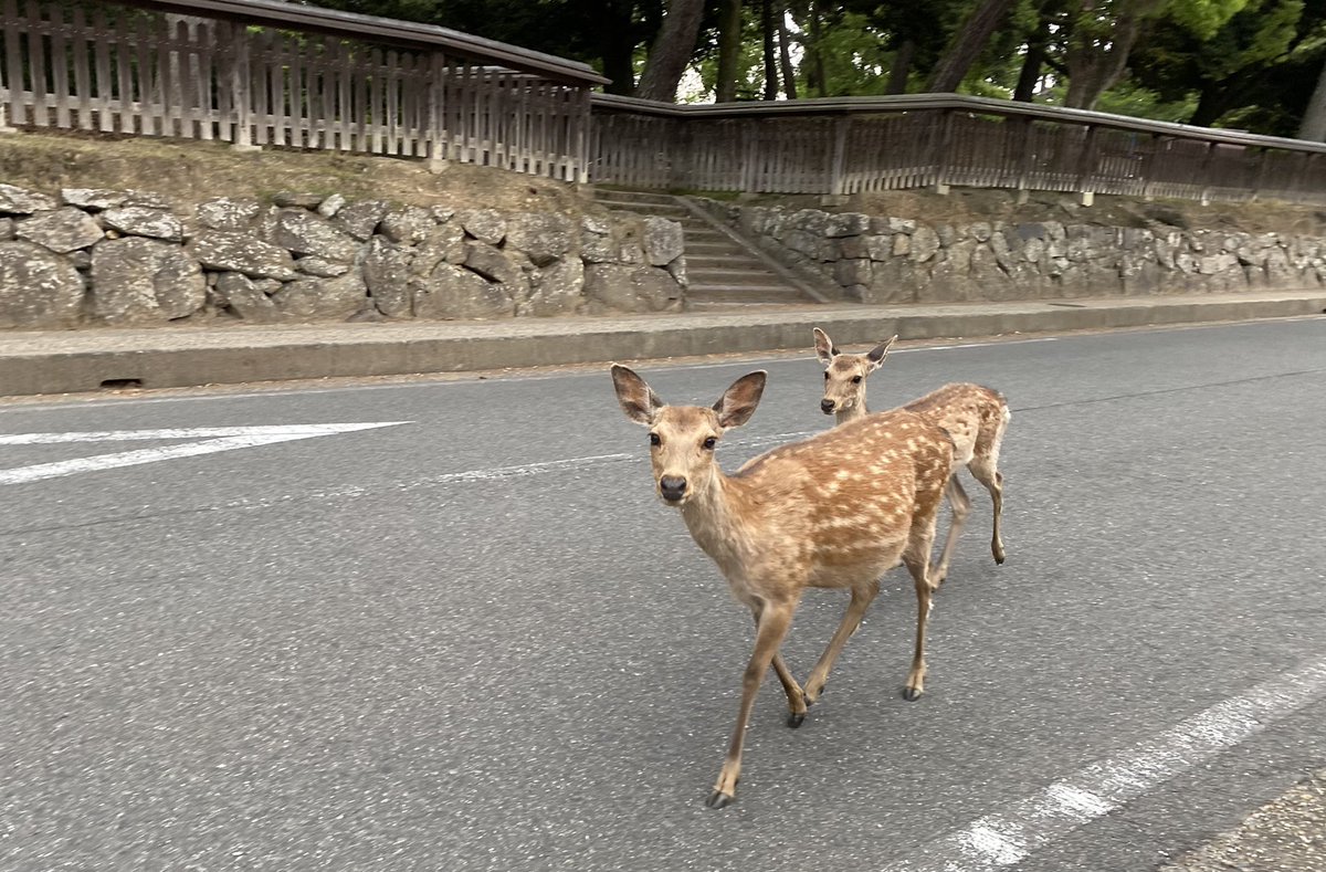 興福寺五重塔辺りの隣国観光客、子鹿にベタベタ触りすぎ。自分が持ってた地図を雄鹿に取られて食べられてるのにヘラヘラ見てるだけで取り返そうともしない。怒りで泣きそうになって駆け寄って鹿から紙を取ってその人らに見せるように持ってたビニー… https://t.co/F7mH3sUhfF