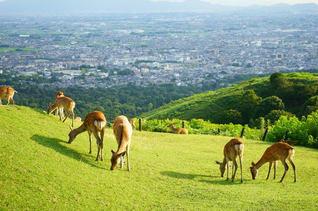 展望ポイントは、新日本三大夜景の一つにして、奈良県最大の夜景スポット。山頂で野生のシカと出会えることも。
