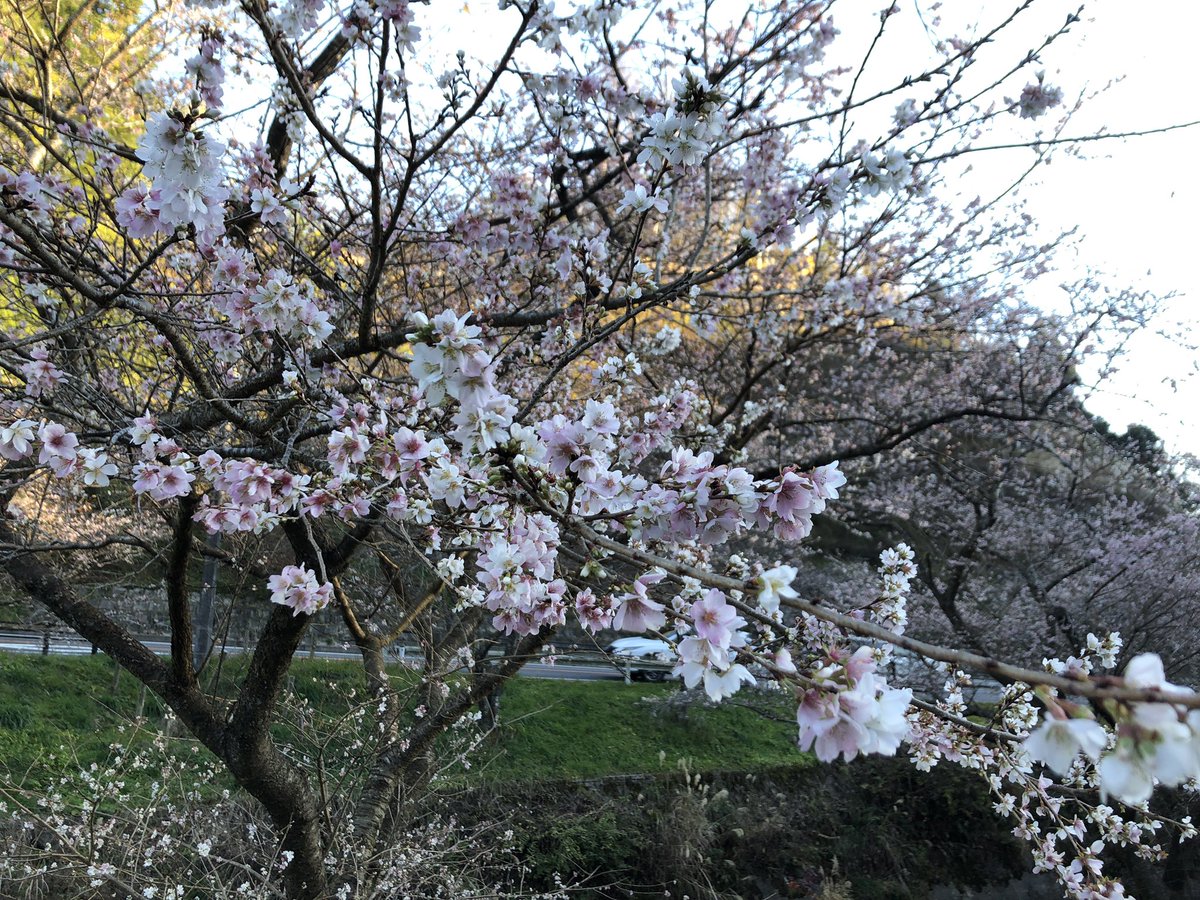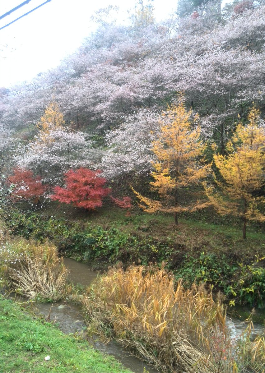 満開まで少し早いですが、本当に桜と紅葉がみられ不思議な感じです。 https://t.co/S7dz7i00xD