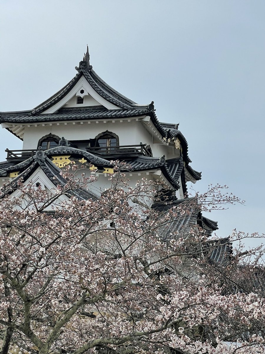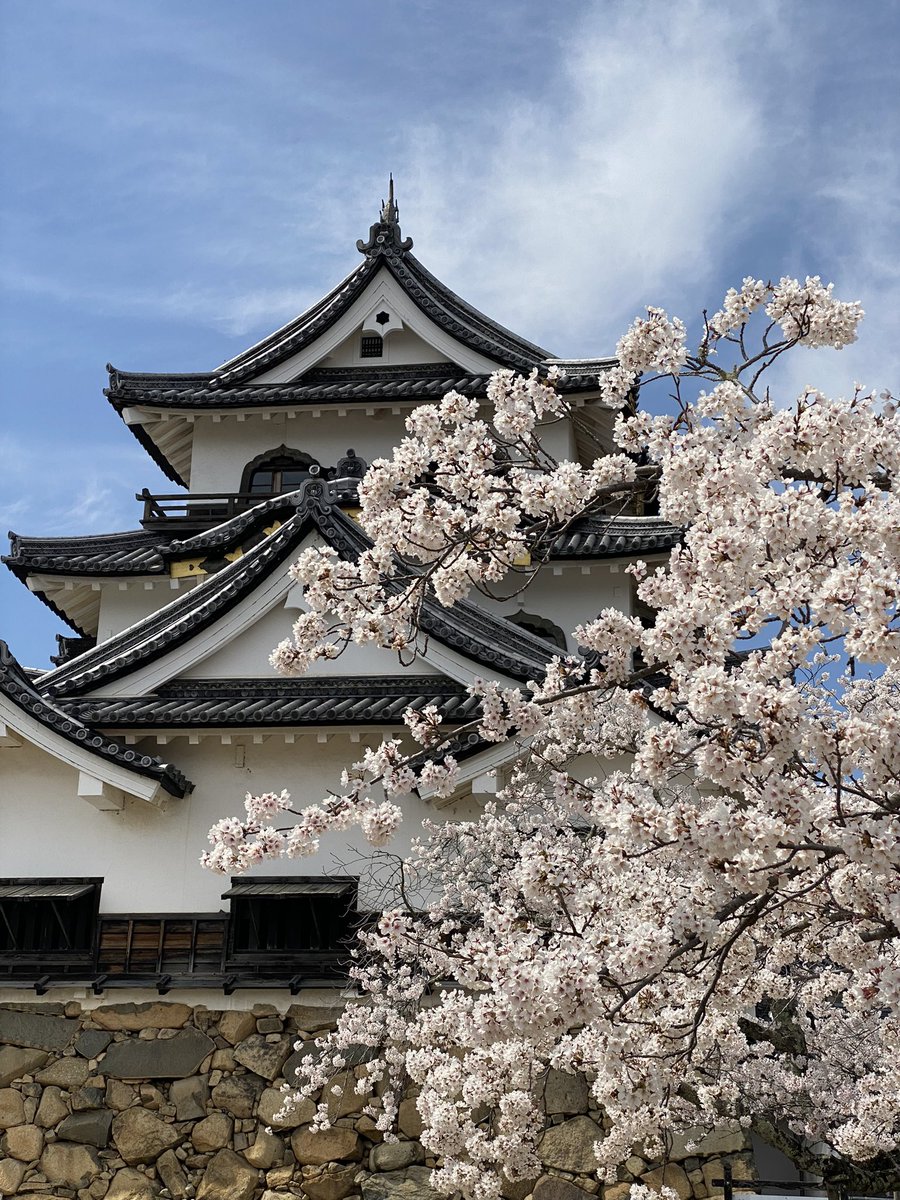 桜はまだまだでした!国宝五城の一つで井伊家ゆかりの地でもあります。博物館には赤備の甲冑などが展示されています。小振りな城ですが多彩な破風で派手な印象です!石垣の積み方も牛蒡積み、野面積み、落積みなどが確認出来て勉強… https://t.co/7v4ZzfOEYQ