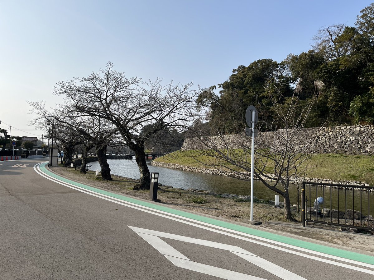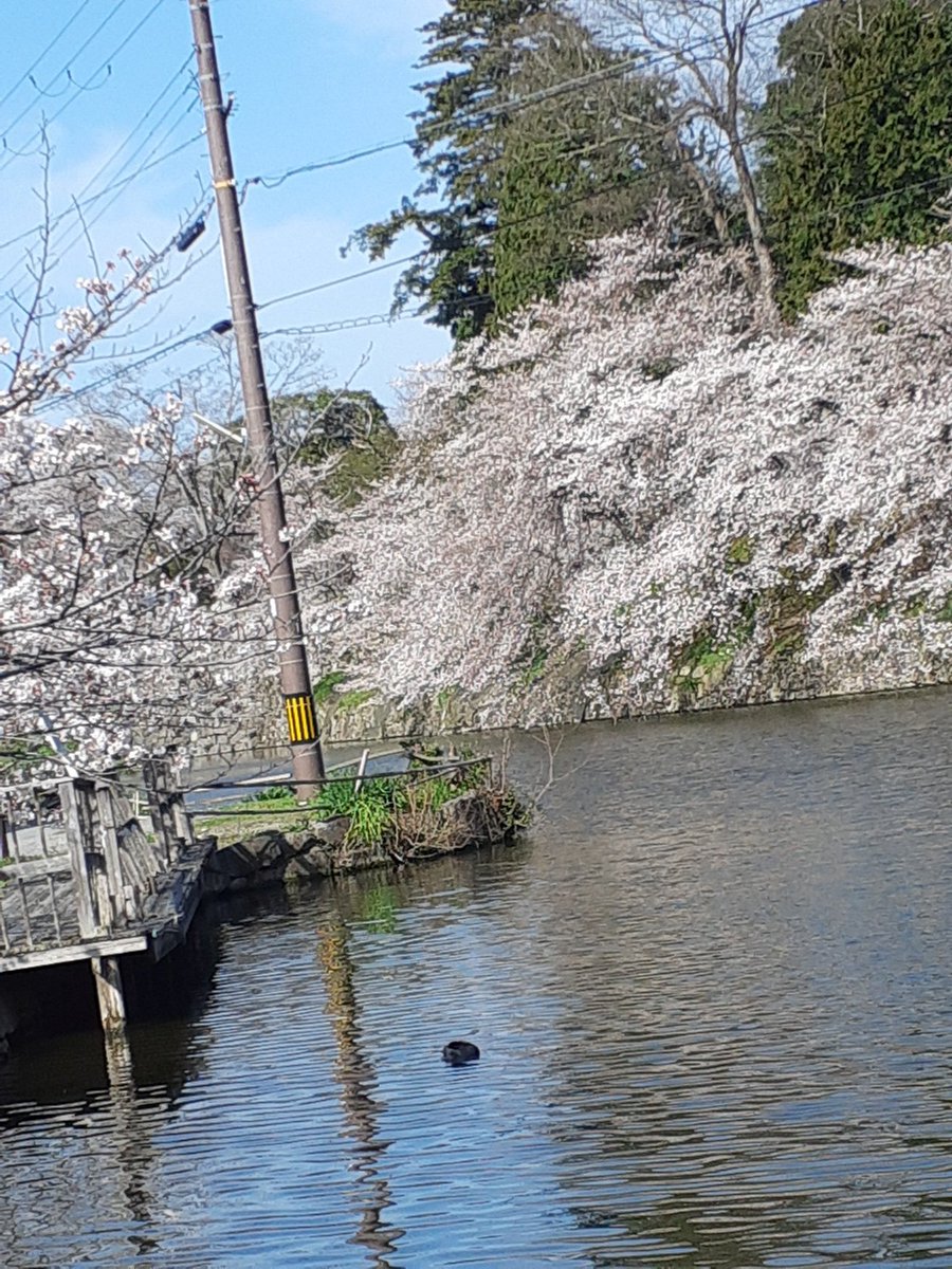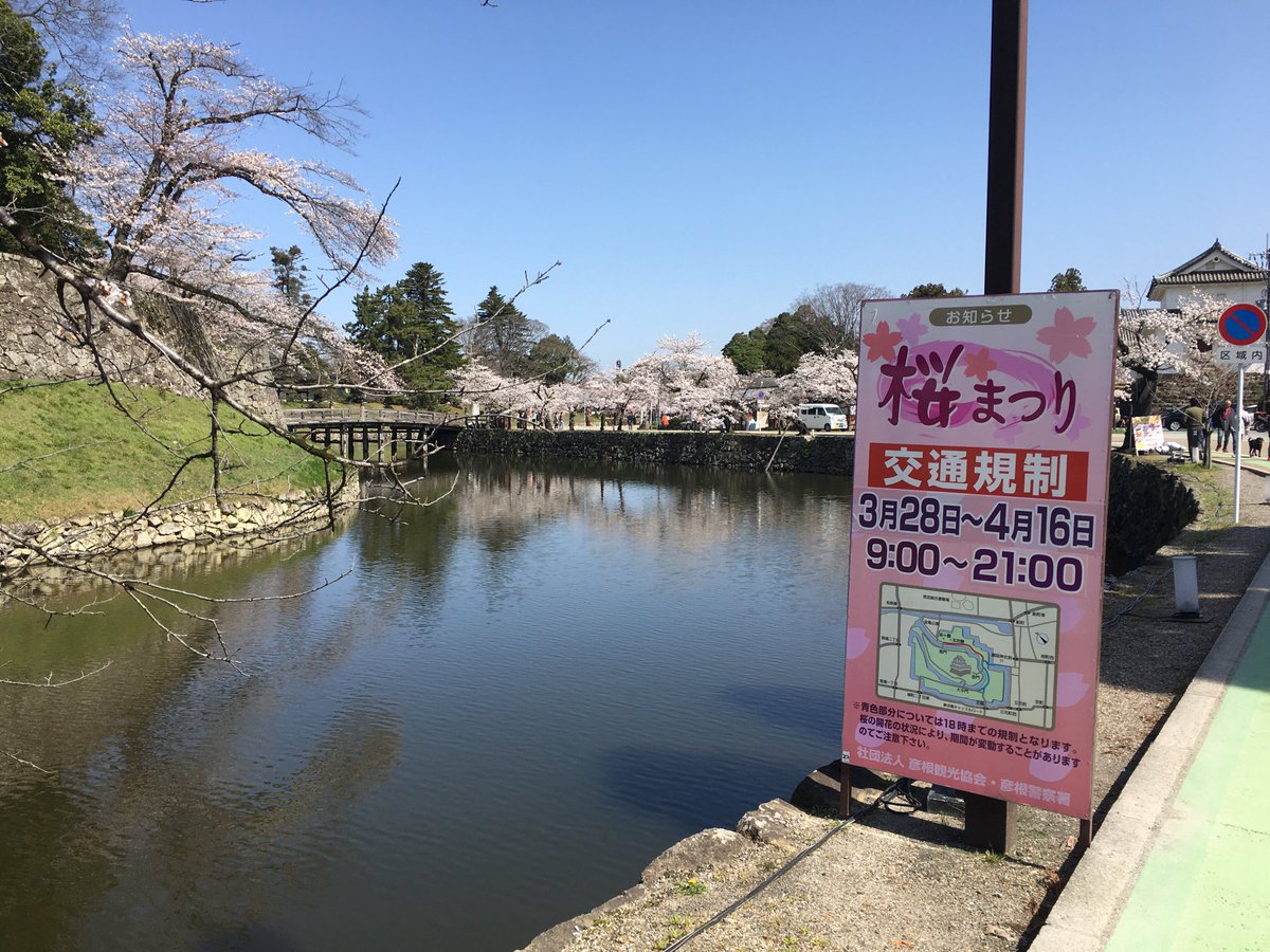 @hikone_castle 4月3日(日)の彦根城ですね。14時45分現在、国宝天守入場の待ち時間はほとんど解消したのですね。彦根城内堀沿いの桜はずいぶん開花したのですね。彦根城梅林は、ほとんど見納めなんでね。