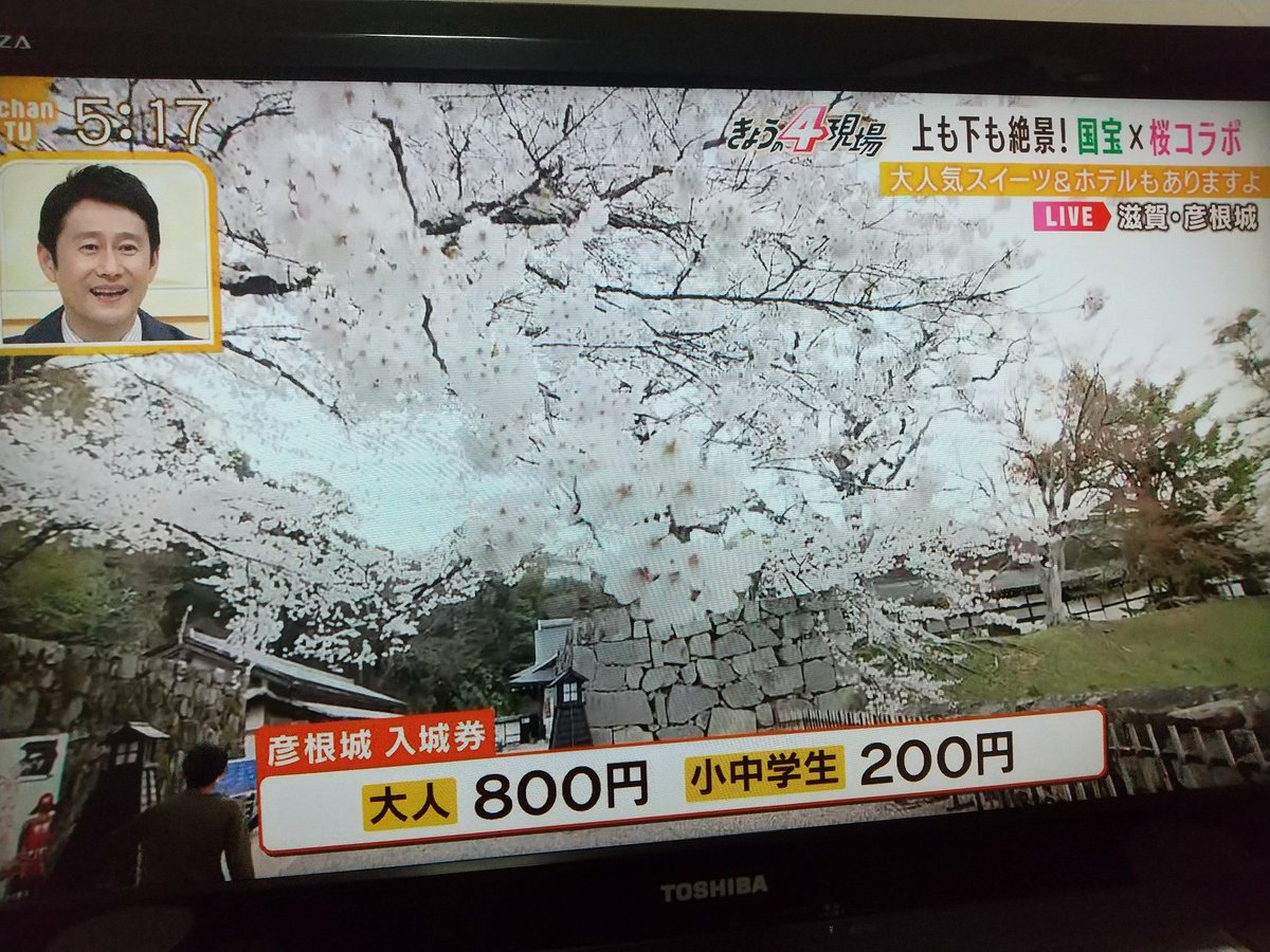 彦根が今日満開宣言だったらしくて彦根城から中継してる! 彦根城は確かに桜の木がたくさんあったなぁ https://t.co/fP0Xe7at1h