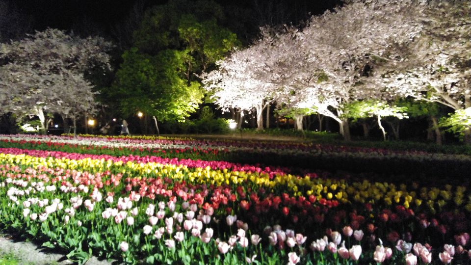 長島のなばなの里、桜からネモフィラまて夜間ライトアップするついでに、冬のイルミネーション片付けずに続行している疑惑。 https://t.co/LCFuPC7HV7