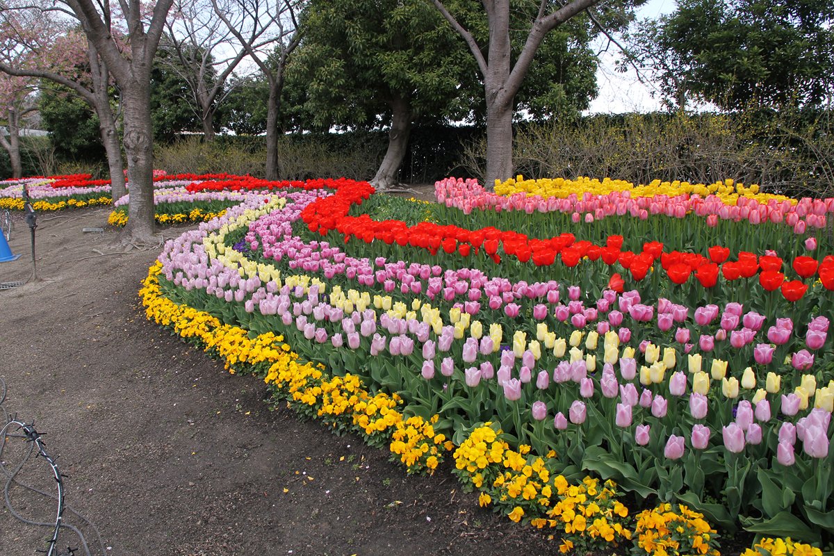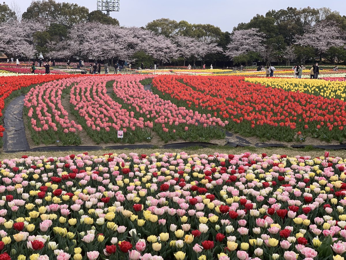なばなの里のお花畑、早咲きのチューリップが河津桜と競演しています。 https://t.co/9xCmZYK1bk