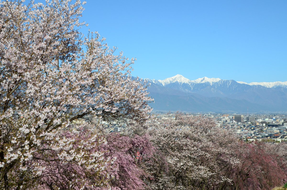 国指定史跡の弘法山古墳は桜の名所として知られ、遠く北アルプス連峰を見渡す景色も楽しめます。桜の満開時には山全体が淡いピンク色に染め上げられ、大勢の花見客で賑わいます。オオヤマザクラ、コヒガンザクラ等を中心として、山全体が花で覆われ… https://t.co/gAhZmaCmtg
