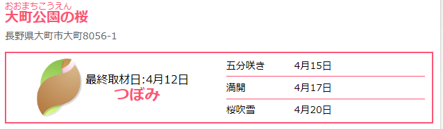 中綱湖の桜の開花&満開日が