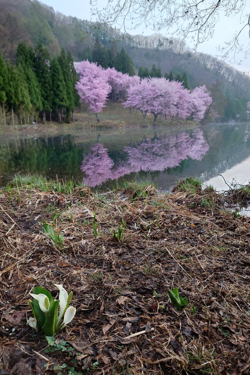 中綱湖の大山桜が満開です。 https://t.co/wnSjk1uFjR