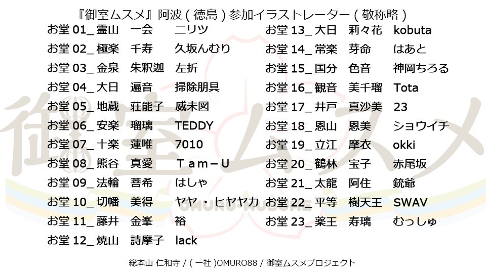 『御室ムスメ』をデザインしてくれた、素敵な88名のイラストレーター一覧はこちら!!
