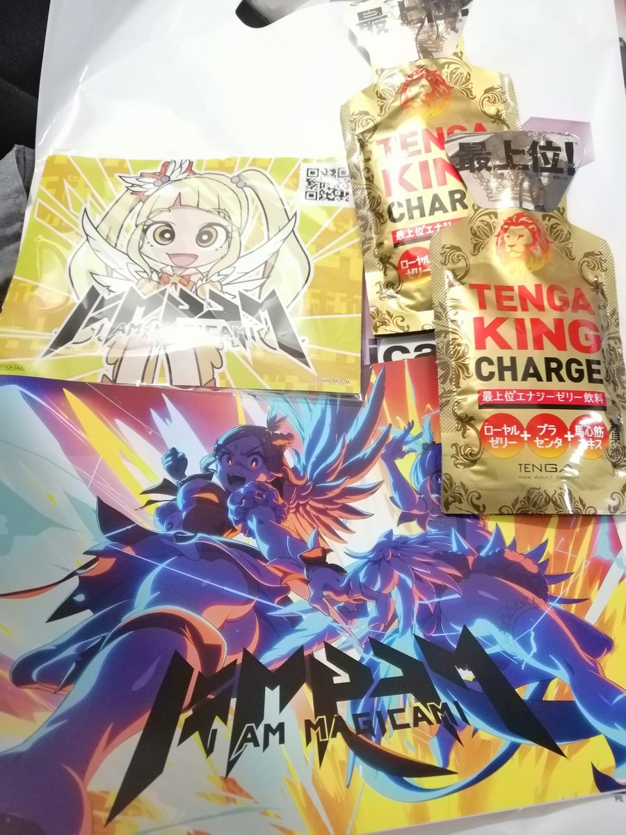 アイアムマジカミのブースで貰ったのは、ホッカイロとTENGA KING CHARGE というゼリー飲料。