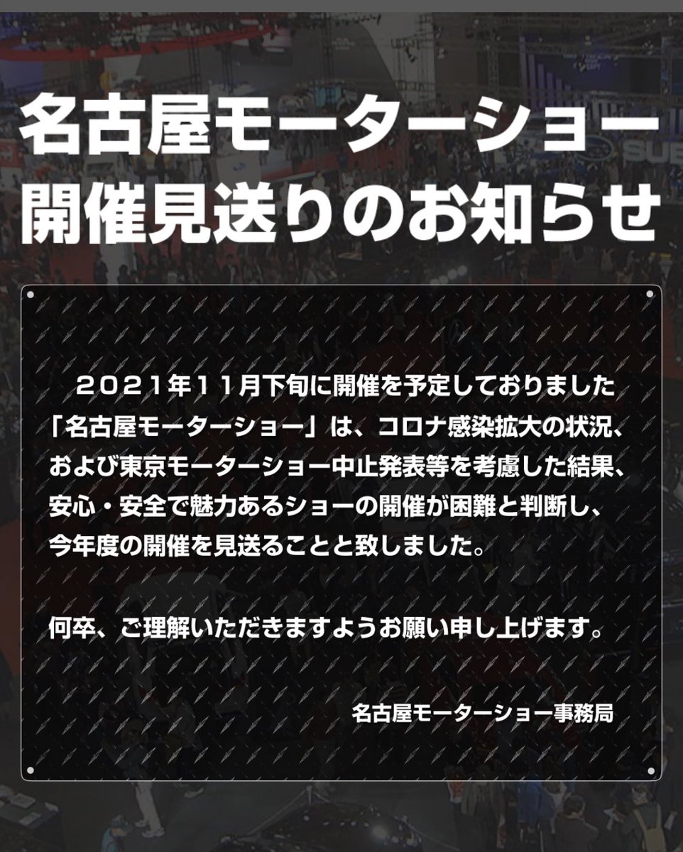 【名古屋モーターショー2021】開催中止を決定…東京・大阪・福岡に続いて(レスポンス) - Yahoo!ニュース
