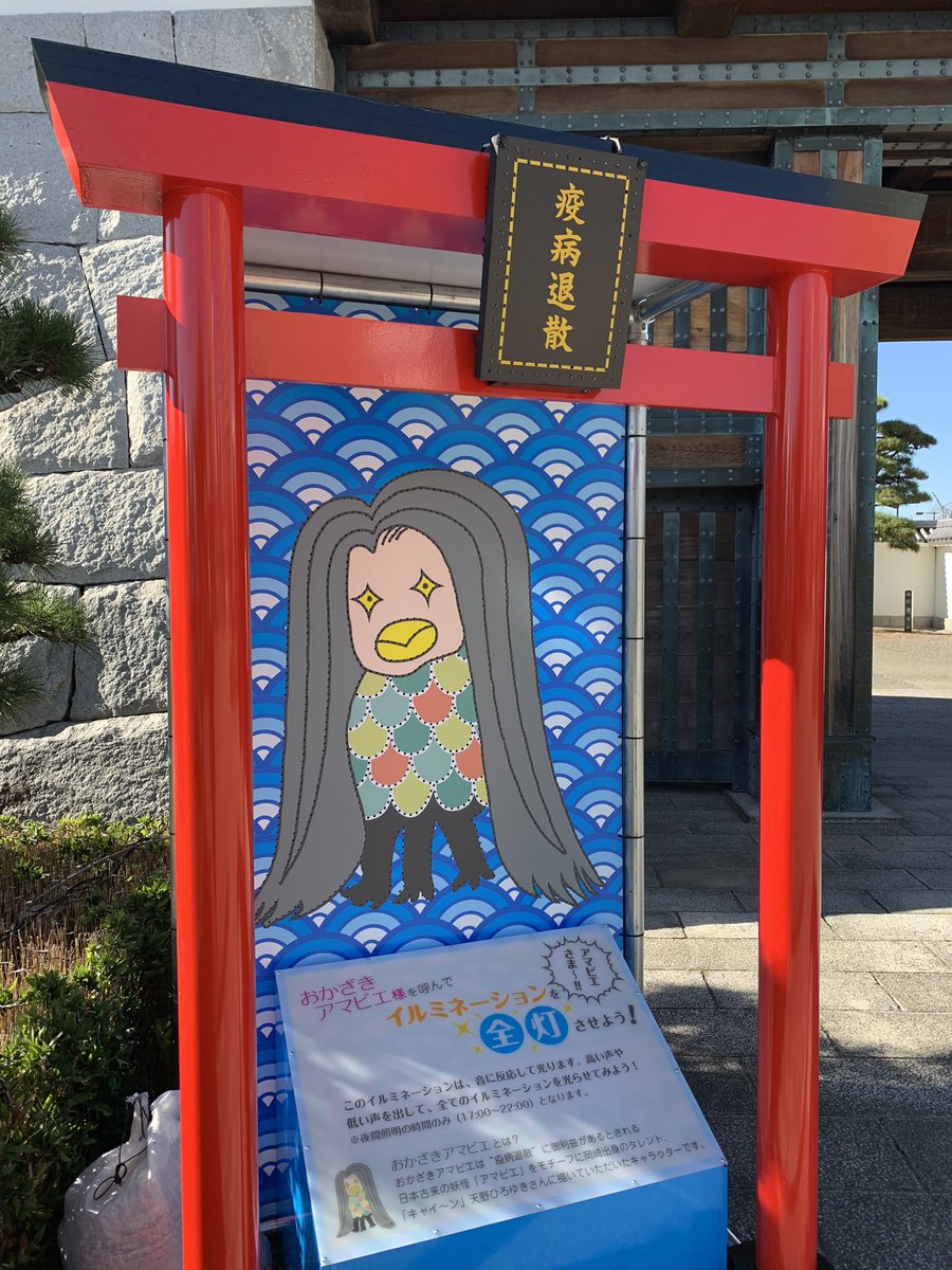 岡崎城大手門前に、いつの間にかこんなのが設置されてた! #岡崎城 #アマビエ様 https://t.co/uWac6xeKZb
