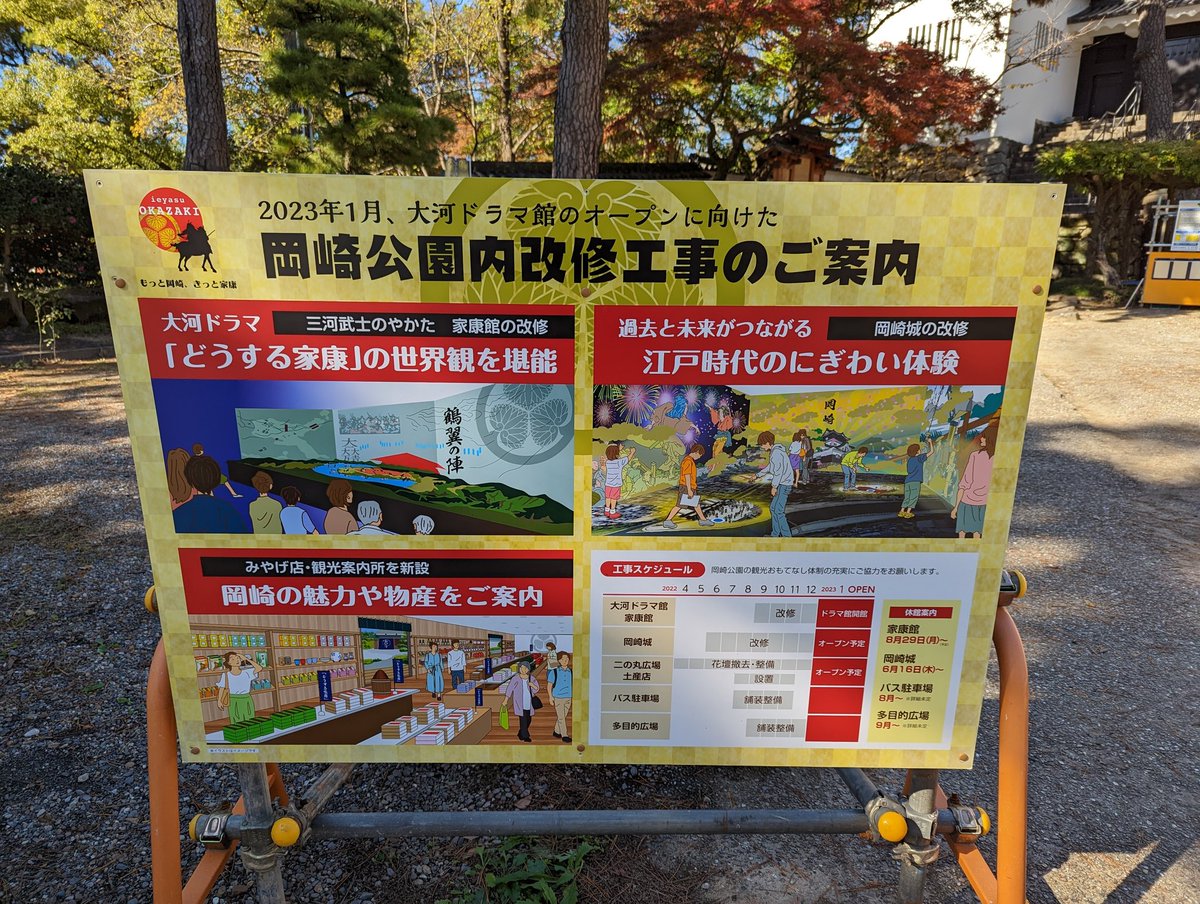 あ、岡崎城は1月まで改修してるらしいですよ。周りは入れるみたいですが。