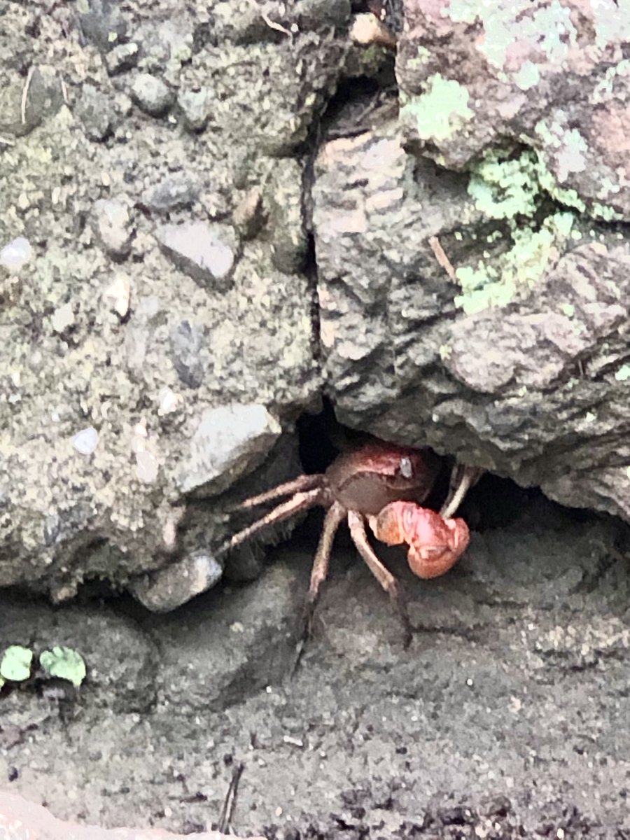 吉田城の石垣アパートには、赤い顔したカニさんが沢山住んでいらっしゃいます。豊橋は良いとこですね。 https://t.co/s3zA2D4CTs