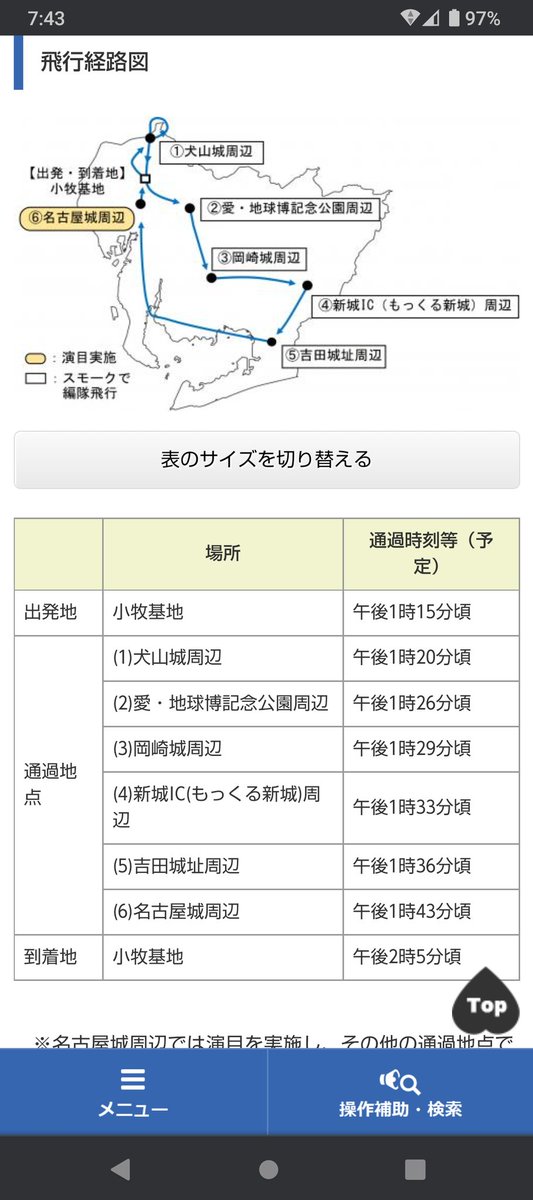 名古屋城、犬山城、岡崎城、吉田城なら、明日ならブルーインパルスがみれるかも?