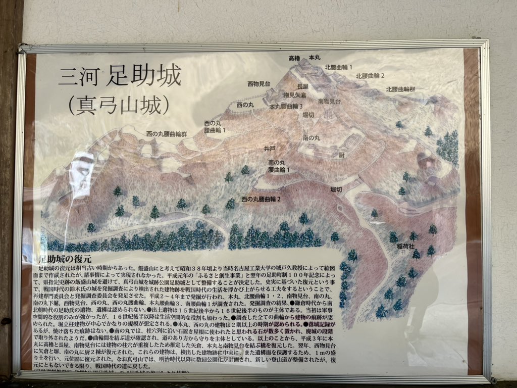 足助の古い町並みが一望できる標高301メートルの真弓山に、高櫓・長屋・物見矢倉・厨(くりや)などの建物が復元されています。発掘調査成果に基づく戦国時代の山城の復元は、全国で最も早… https://t.co/sSI8nfIJ0X